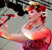 Quand les cordes des instruments frémissent et que les premières notes se font entendre, la jeune femme se met à danser avec un port de tête indien et dans un déhanchement africain. Puis elle répond aux musiciens dans une langue aussi chantante que l'égyptien ou l'arabe ou les rejoint dans cette harmonie qui emmène l'auditoire tout droit l'évasion. N'est-ce pas cela la World Music ? |