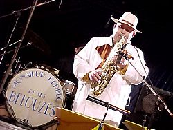 19h30, la soirée démarre en fanfare... Hem. Sergent Pépère, fanfare Poddème, égarée sur le port de commerce à la recherche de la flamme perdue. |