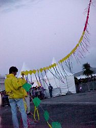 Et oui, malgré le vent trop fort en début de soirée et trop faible vers la fin, Nasser a réussi à monter son cerf-volant à 800 mètres de haut. Perdu Michel P. ! |