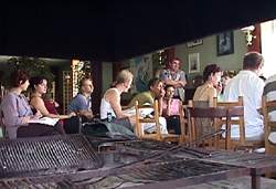| 14h29, la conférence de Presse est animée par la vivifiante Carmina de la compagnie Sarruga. Son accent espagnol nous invite à la redécouverte de l'univers maritime avec la parade "Nelaüa" à 20h00 et 23h15 sur les quais. | ||