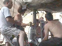 ![]() des techniciens opèrent ici sous le ventre de la baleine ... |