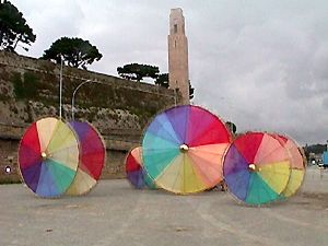 ![]() Les roues de couleurs sur le Parc à Chaines pendant la répétition. |