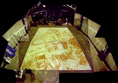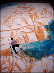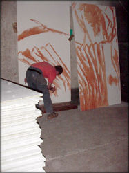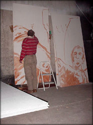 ![]() Lundi 29 mai, 15h. Début du tracé des contours sur les panneaux |