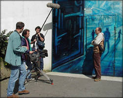 ![]() Mercredi 7 juin, 11h. Une équipe de Thalassa rencontre Paul pour un reportage sur la fresque de Brest 2000 qui passera pendant les festivités sur FR3. |
