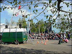 Samedi 29 avril, 18h18. Le samedi 28 avril, en partenariat avec MAJ, les Mordus des Arts dans la Rue ont rassemblé un nombreux public (250 personnes) devant l'Unité Mobile de Décontamination inventée par le trio des Sanglés... |
