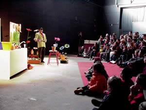 | Près de 130 personnes étaient présentes pour assister à la répétition publique du nouveau spectacle : N.J.N.J.G.M. : Nectar de Jus de Nains de Jardin Génétiquement Modifiés |