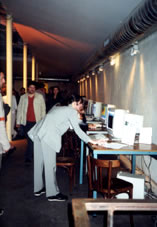 ![]() Le parc des machines gracieusement mis à notre disposition par le Web-bar pour une consultation à chaud. Il n'a pas désempli de 19h à 21h Nos VRP ont guidé les novices avec dextérité. |