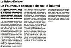 "Le spectacle de rue monte sur la toile avec le Fourneau" (02/04/01) "Le Fourneau de Brest lance un site Internet" (10/04/01) (les articles ne sont plus disponibles sur le site du journal)