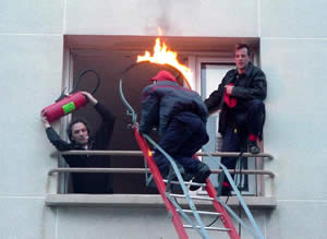| Vite... Il faut réagir... Sortez la grande échelle.... Vérifiez les tuyaux... | |