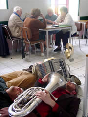 On range les bols, on tape du pied, "Ce qui est bien avec les fanfares, |