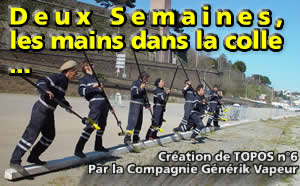 "Ben, j'apprends à Générik Vapeur l'art de l'affichage, c'est pour le Topos n°6, avant ils étaient à la Réunion, ils ont construit un wagon qui roule. Tiens attends, BRUNO !, viens ici, il y a le gamin qui voudrait savoir ce que vous avez fait ce matin."
