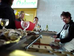 Bruno, pose les nouvelles du jour et s'approche du plateau de télé improvisé au milieu du Fourneau, sous la voûte ensoleillée. Les autres savourent des huîtres de la "crièedenface" toutes fraîches comme y faut, Mathieu et Caty fêtent leur anniversaire d'amour passionné. Claude sort les photos de leur première rencontre, Grains de Folie 96, inspiration ...
