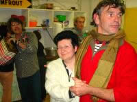 Le matin, les comédiens travaillent la danse et les chorégraphies, avec Brigitte et Denis, de la compagnie Pied en Sol. A l'aube il faut lutter, Pollux préfère poliment la contredanse, certains souffrent et vont passer leurs nerfs sur une pauvre souris effrayée d'un ordinateur de l'ECM. "La choré avance" assure Brigitte, d'une voix énergique de prof de gym-à huit heures-un samedi matin. je n'en peux plus je vais boire un café. Pierrot est devant un ordinateur, agacé, "Kevin c'est quoi là pourquoi j'peux pas joindre un fichier jpg à une copine de la liste de diff ?".