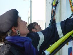 - Oui, justement à propos, il faut que j'en parle à Caty et Pierre, mais il va falloir bosser deux techniques, parce que les chorégraphies, tu comprends à cause du vent ..."