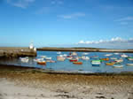 | 10h28 | Arrivée à Molène. Grand soleil. Nous ne pouvons pas prendre la navette comme prévu; il y a trop de monde. Ce n'est pas grave, nous gravissons le quai en marche avant (juste pour rappeler que les Generiks le font en marche arrière ! Peut-être que dans leur tête çà marche à l'envers). |