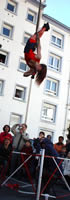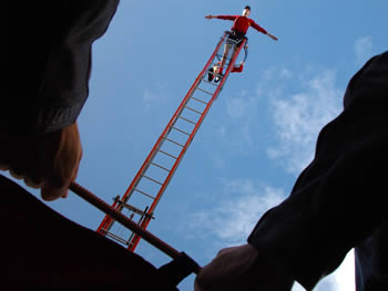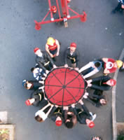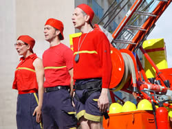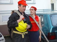 ![]() Phil, un sapeur volontaire à qui l'eau fait un peu peur ! Le capitaine Kuch le rassure... |