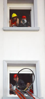 ![]() Mme Besnier, 84 ans, sauvée des flammes. Et c'est pas facile avec des seaux d'un litre ! |