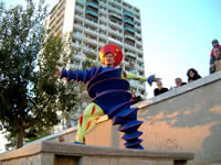 Il s’agit d’un univers de fête et de foire qui mêle les gens de la rue au milieu du spectacle. Les costumes intègrent le son et permettent une danse dynamique tout en restant extrêmement spectaculaires. Pendant 30 mn, la danse sera à l’honneur pour donner à voir et à entendre univers loufoque et irréel. Les costumes impressionnants valorisent le mouvement et le son. Ils font référence à ceux d’Oscar Schlemmer : formes géométriques, visuels colorés. Les systèmes sonores sont intégrés aux danseurs. Chaque personnage porte sur lui des haut-parleurs de formes différentes selon le costume. Cette mise en valeur permet des jeux dans l’espace public. En effet chaque corps sonore reproduit un système musical, comme ils sont tous synchronisés entre eux, la circulation est plus libre. On pourra les voir évoluer sur une petite place puis se déployer rapidement dans une grande avenue, attirant et entraînant le public. Les partenaires du projet, à ce jour : Le Fourneau, Scène conventionnée Arts de la rue [en Bretagne] Production : Migrateurs / Transatlantique, avec le Théâtre du Merlan, Scène Nationale de Marseille, et Lieux publics, Centre National de Création des Arts de la Rue, Marseille. |