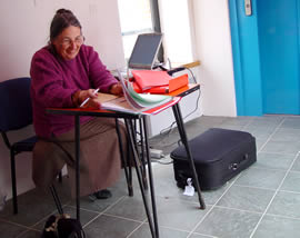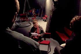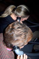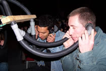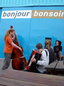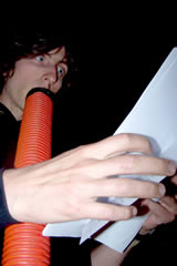 "Y' a plus de femelles que de males, mais on est tout triste, il n'y a aucune bigoudène. On a tout bien nettoyé au jet de vapeur, on a remis un peu la pression, on a écouté un peu les textes sur les testeurs… c'est dommage c'est tout en Français, pas Breton. Et puis, il y a un truc vraiment marrant, on a appris que les îles d'Ouessant, ça n'est pas en Suède, mais ici à Brest et que en fait, il n'y en a qu'une, donc les Suédoises, elle viennent de Brest, on a vraiment hâte de mettre tout ça en marche dans le Sonomographe, ça a l'air vraiment d'être pas mal parti." fait à Brest, le 10 mai 2005 |