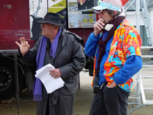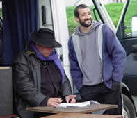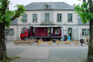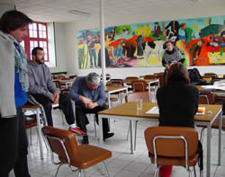 La pluie et le vent n'auront pas été aussi accueillants que les Plougonvenois pendant ce temps de résidence. C'est à l'abri dans le foyer du 3e âge que les comédiens répètent leur texte avec René Pareja, le metteur en scène. |