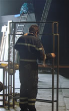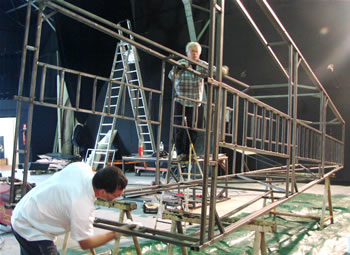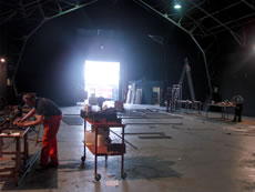 Dès son arrivée au Fourneau, La Patriotico Interesante s'attelle aux premiers préparatifs de son spectacle
