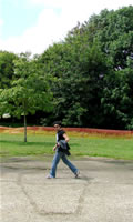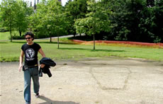 Ignacio en repérage à Lampaul-Guimiliau avant la représentation du vendredi 27 juillet...
