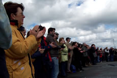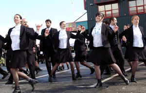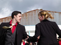 C'est avec une énergie communicative et les rayons du soleil, que les danseurs et musiciens de Eostiged Ar Stangala ont débarqué ce dimanche 30 mars sur le Port de commerce de Brest. Les danseurs, qui ont laissé de côté leurs costumes traditionnels pour des costumes plus contemporains, ont formé deux groupes se défiant, se séduisant, pour finalement se mélanger. |