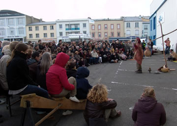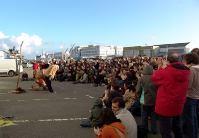 Après deux semaines passées sur l'île Molène, la compagnie La Calma est revenue sur le continent pour deux nouvelles expérimentations publiques sur le Port de commerce et à l'intérieur du Fourneau, le samedi 12 et le dimanche 13 avril. |