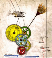 Grâce au don de cette native de Treglamus, le Conservatoire a eu l'idée de revenir au Pays de Guingamp en 2008 afin d'y entreprendre l’inventaire et la restauration des nombreux moulins à eau individuels de la vallée du Leguer. Avec le soutien de l’association Au Fil de l’eau, un atelier temporaire de restauration sera installé à Belle Isle en Terre en mars 2008, un autre à Chatelaudren en septembre 2008 et un troisième aux Moulins de Palacret au printemps 2009. A l’issue du collectage et de la remise en état, les moulins seront exposés au public à partir du second semestre 2009. Parmi ces fameuses pièces hydromobiles uniques seront visibles l’Epouvantail à blaireaux de Mr Louven, la Touilleuse à pâte à crêpes de Mme Rosmorduc, ou encore le fauteuil à bascule de M. Legonidec. Téléchargez le dossier de presse résidence (pdf) EquipeChantal Joblon, Marie Bouchacourt, Bertrand Boulanger, Luis Maestro, Pascal Rome, Jean-Baptiste Gaudin, Dominique Giroux, Sophie Deck, Patrick de Bruyn, Boa Passajou, Patrick Girot. PartenaireLe Fourneau à Brest, Centre National des Arts de la Rue Au Fil de l'Eau, Réseau d'Art et d'Histoire, (Office de Développement Culturel des Côtes d'Armor, Association Vallée du Léguer, association Culture & Patrimoine, association Etudes & Chantiers de Bretagne - Pays de la Loire, Pays de Guingamp) Le réseau Au Fil de l'Eau est soutenu par le Conseil Régional Bretagne dans le cadre du Contrat de Pays. |