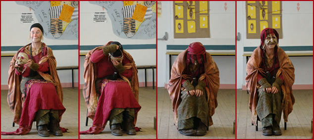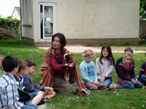 Premier contact, jeudi 30 avril, avec les élèves de l'école publique d' Henvic. Les élèves et leurs professeurs font la connaissance de Tamat, une vieille femme touareg : le personnage de la nouvelle création de La Calma. Melissa (comédienne), Khadija et Eric (metteurs-en-scène) et David (musicien) invitent les 37 enfants à s'asseoir en cercle sur les nattes touaregs et leur racontent les voyages au Mali, à Kidal, les rencontres avec les femmes, les mères, les grands-mères du pays, la cérémonie des trois thés... et le retour en France avec la création d' une nouvelle histoire à partager, un conte masqué : « Tamat ». |