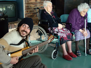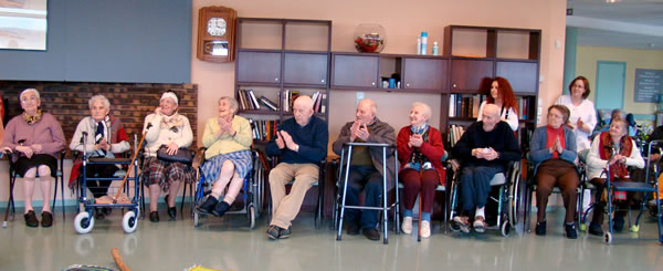 Mardi 5 mai, La Calma rend visite à la résidence de personnes âgées Ker an Dero et « c'est mieux que dans la rue car on est au chaud ». Devant un public captivé, Mélissa exécute un aperçu du spectacle. Tamat capte toutes les attentions, et une grande complicité s'installe avec les résidents, qui n'hésitent pas à intervenir tout au long de la représentation. |