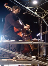 Jérôme Fohrer, à la contre basse et à la basse, assure l'accompagnement musical des chants polyphoniques interprétés par les plasticiens. |