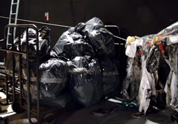 | La grande difficulté du spectacle : la gestion des déchets. (actuellement, une centaine de films plastiques à jeter). La compagnie a donc décidé de faire du « développement culturel durable », et d'intégrer ses déchets au spectacle. | ![]() |