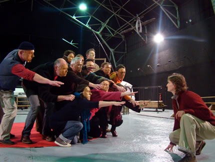 Après avoir interviewé des volontaires sur le thème de la fratrie, la compagnie continue à travailler sur l'intégration du public dans son spectacle.