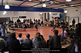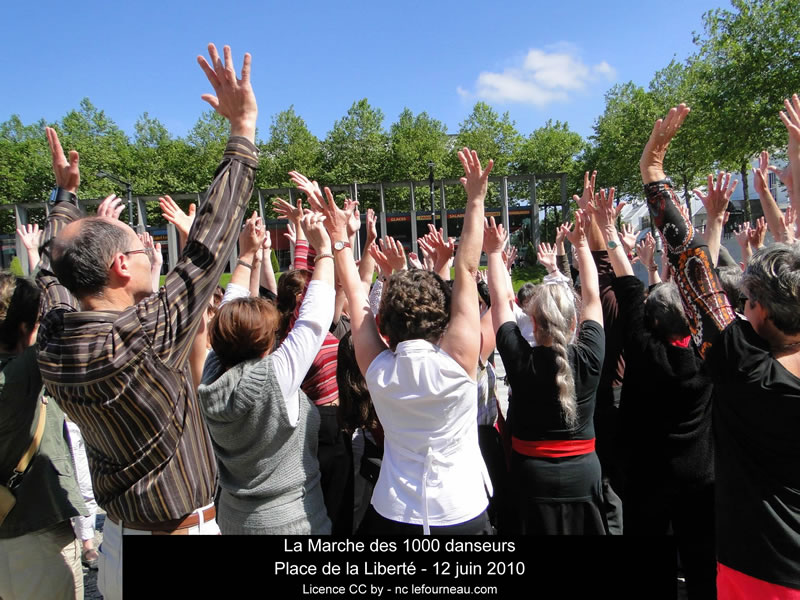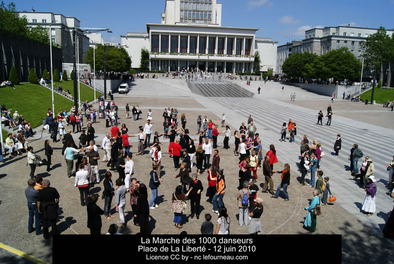« La Marche des 1000 Danseurs » est une aventure artistique fraternelle et follement généreuse de 6 mois, réalisée entre le 20 décembre 2009 et le 20 juin 2010 à travers la ville de Brest, du Port de commerce au quartier de l'Europe, en passant par la Place de la Liberté...