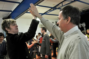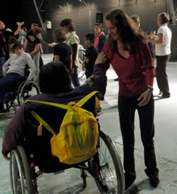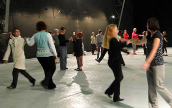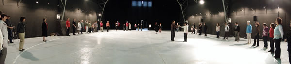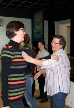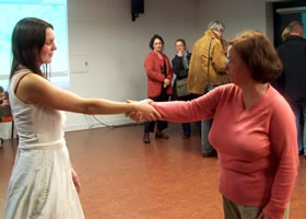Ce même jour à 19h30, à la mairie, certains membres du CCQ de la Mairie du Quartier de l' Europe, complices et partenaire du projet, se sont pris au jeu d'un apprentissage plus rigoureux de la chorégraphie. Nous avons travaillé avec eux la version rapide, c'est à dire la version comptée (à voir par là).