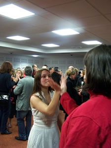 Samedi 6 mars, le centre socio-culturel l'Escale fête la journée de la Femme. Plus d'une centaine de personnes est présente pour assister aux diverses prestations proposées (chants, danse orientale...). Sur ces 100 personnes, presque toutes connaissent le projet de la Marche et 25 d'entre elles se sont essayées avec curiosité à une démonstration.