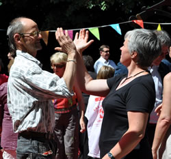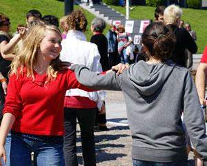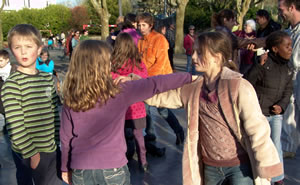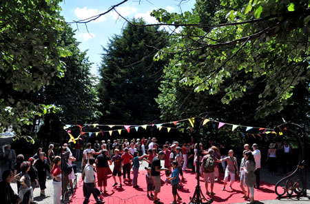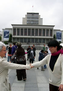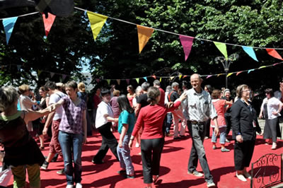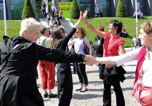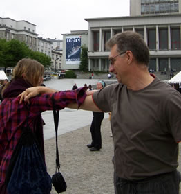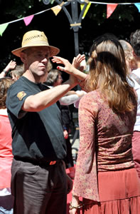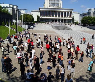 | Samedi 29 mai, place de la Liberté à l'occasion de la 10e fête des Langues du Monde organisée par le collectif Langues du Tonnerre, la compagnie Tango Sumo et ses complices initient les passants à la chorégraphie de la Marche des 1000 danseurs. |