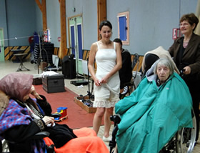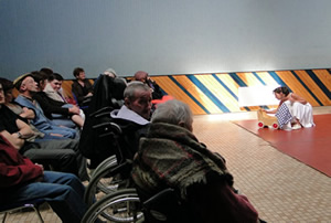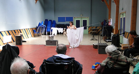 11h : les personnes âgées de la maison de retraite de Lannilis ont découvert une partie de l'univers de la compagnie Banc Public. Ils ont pu assister aux dix premières minutes de leur spectacle Epingle à Nourrice. Avant de s'en aller ils ont pu par la suite échanger sur ce qu'ils venaient de voir. |