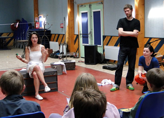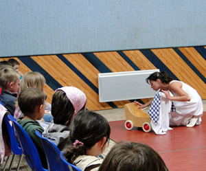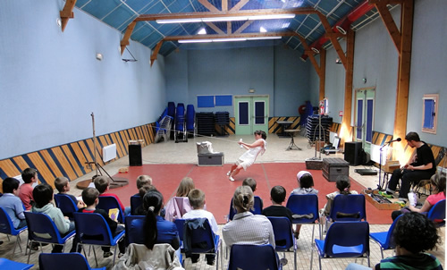15h : ce sont les enfants de 6 à 9 ans du Centre de loisirs de Lannilis qui ont fait irruption... Ils ont eu le privilège de découvrir en avant-première l'intégralité du spectacle. Ces premiers petits spectateurs ont accueilli avec enthousiasme et curiosité cette demie heure de danse qui parle des mamans. Après un bon quart d'heure de questions à coups de "et pourquoi...?" les dix-huit petits sont repartis ravis !