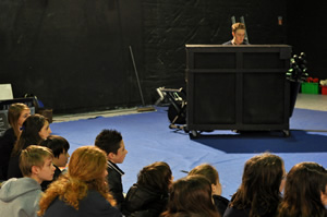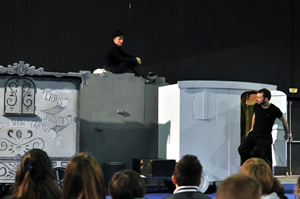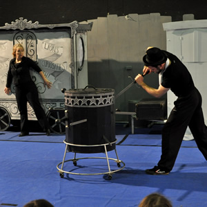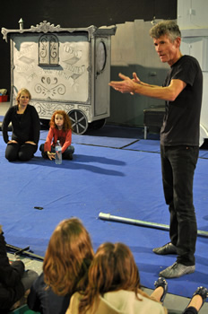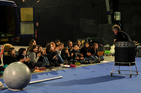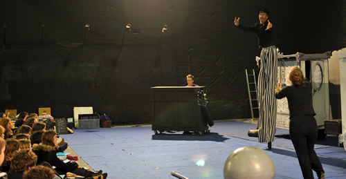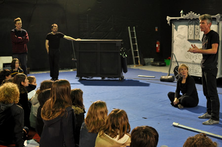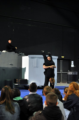 Par la suite, la compagnie britannique Bash Street a présenté une partie de son nouveau spectacle The Strongman et a répondu aux questions des élèves. Ils ont ainsi pu découvrir les ficelles de la création d'un spectacle.