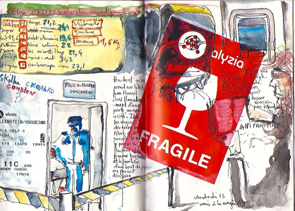 voici quelques nouvelles images de mon carnet de bord qui se colorie des multiples étapes de notre voyage….