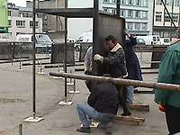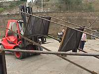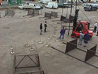 le montage de l'arène a commencé. Fenwick et gros bras