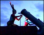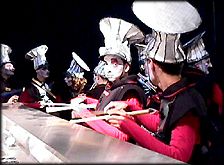 Deux jacquemarts humains viennent alternativement frapper les peaux