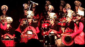 et distribue les bouquets aux filles... et aux 2 maîtres tambours
