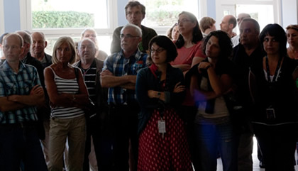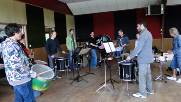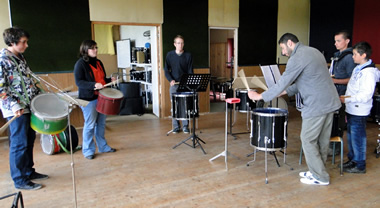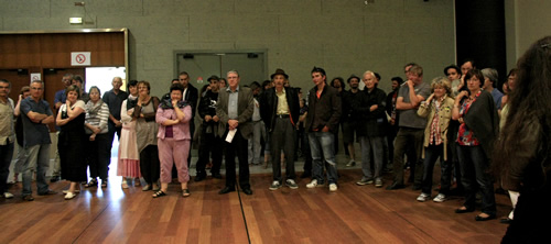Deux jours avant le jour J, toutes les petites mains du spectacle (comédiens, équipe technique et bénévoles) se sont enfin rencontrées devant un pot d'embarquement suivi d'une répétition des tambours orchestrée par Gilles Rhode, directeur artistique de la compagnie.