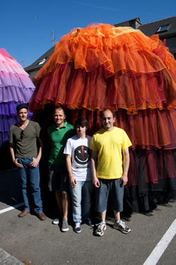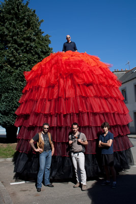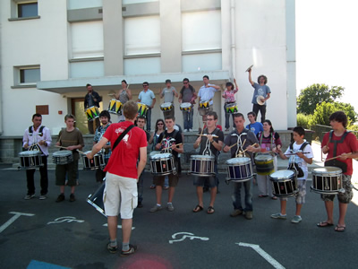 18h : Devant l'école Louis Pergaud, le bruit des tambours se fait entendre au loin. Ce sont les premières notes d'une longue soirée de folie et de poésie. Les tambours de Transe Express et les citoyens-musiciens-volontaires principalement issus du Bagad de Plougastel se donnent la réplique sous l'œil attentif de Gilles Rhode, directeur artistique de Transe Express. Tandis que dans les loges ça s'affaire pour organiser et optimiser le passage à l'habillage des Transe Express, des tambours et des bénévoles, on prépare le pot du Maire.
