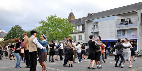 21h03, Place Saint-Herbot, avec une demie heure d'avance (pour ne pas être victimes de la pluie qui se fait menaçante), les Eostiged Ar Stangala font leur apparition au cœur du centre-bourg. Les 50 danseurs du Cercle de Kerfeunteun nous plongent dans la fin des années 1930 et invitent le public à danser sur des airs de musette. Mais cette joie de vivre et insouciance est très vite menacée par la Sorcière de Tréqueffelec qui s'invite à la fête et tue froidement un des villageois... Tout de suite, c'est tout le village qui s'unit pour partir à la chasse de cette horrible sorcière. Une course poursuite, entre tradition humour et modernité, un spectacle plein de fougue et d'énergie qui inaugure la soirée de belle manière.