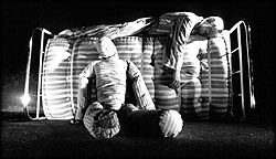 "Requiem pour un couloir""Je vais poser ma valise, déposer mon corps et reposer ma tête, superposer mes rêves, entreposer mes cauchemars, puis j'irai dormir un peu plus loin si ça ne vous dérange pas !" Ce solo a été écrit par un bouffon insomniaque ! Un infatigable noctambule qui fouille la nuit à coup d'imaginaire. Entre mime et danse, cette pièce s'attache à développer un univers très onirique; drôle, tendre avec une pointe de noirceur pour que la nuit garde son mystère ! |
