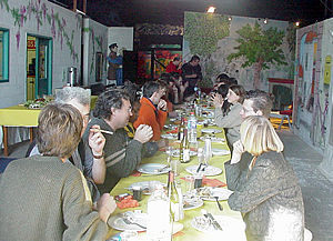 Une vingtaine d'équipes artistiques "Rue et Piste" de la région Bretagne répondant à l'appel conjoint d'Hors Les Murs et du Fourneau se sont retrouvées le jeudi 9 mars 2000 sous le toit du Lieu Brestois des Arts de la rue. Tour de table et présentation des équipes en matinée, buffet convivial le midi et après-midi studieux sous la conduite de Stéphane Simonin, chargé de mission à "Hors Les Murs"... Cette initiative en appelle d'autres ! |